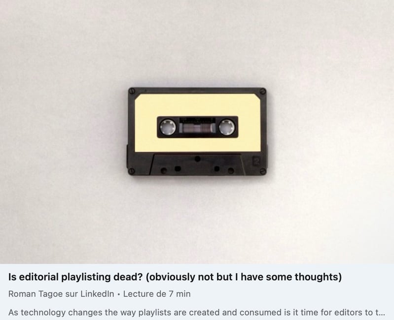 La question est posée par Roman Tagoe (ancien directeur de l’éditorial chez Deezer, Napster justement, mais aussi BMG ou Sony) « Est-ce que l’éditorialisation des playlists est morte ? »