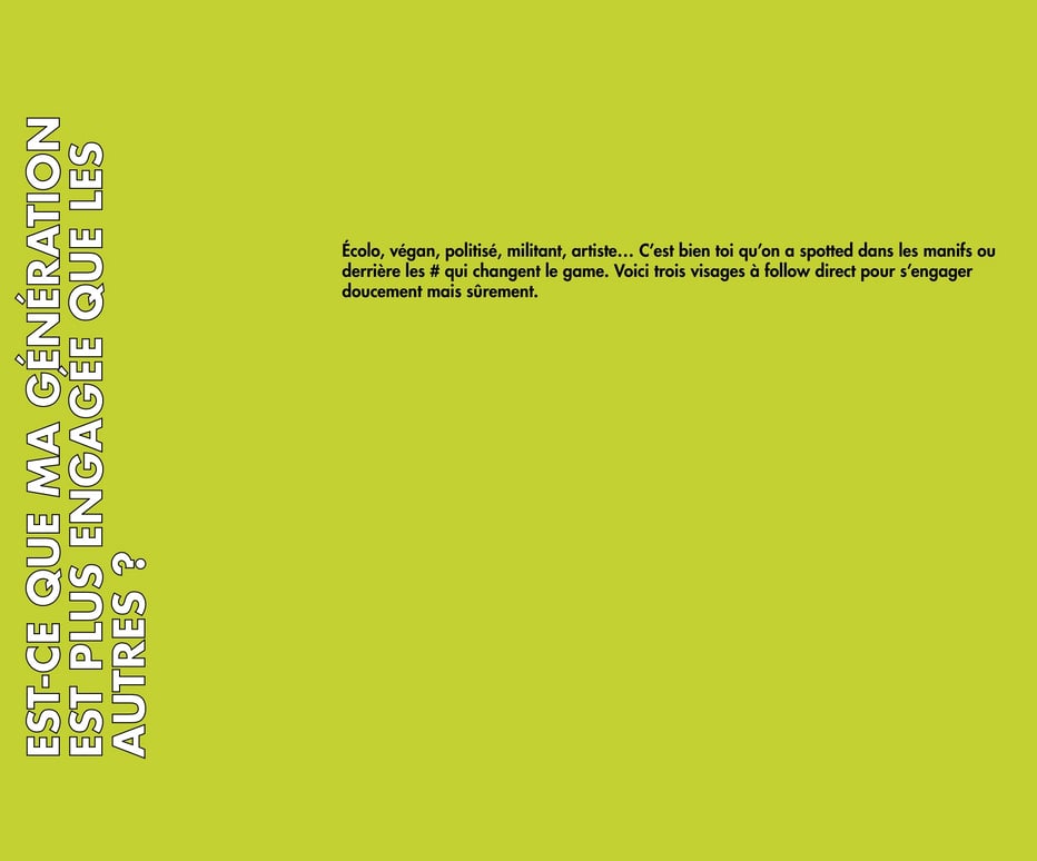« 70% de la génération Z aurait déjà changé ses habitudes pour y insuffler du sens » selon un article du magazine Forbes, cité par le site français Nylon dans un post intitulé : Est-ce que ma génération est plus engagée que les autres ?
