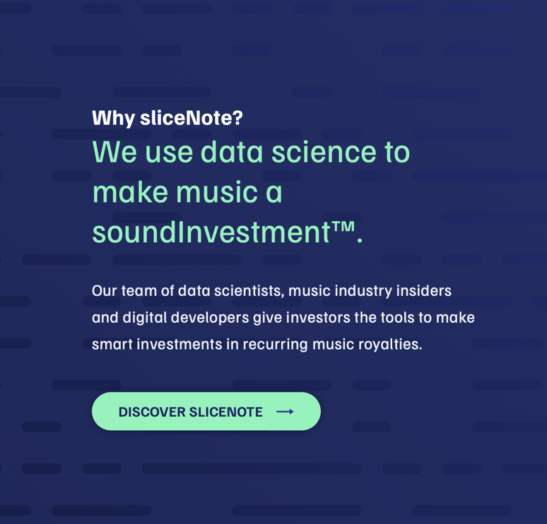 A côté, et à l’instar des pionniers de Royalty exchange, une place de marché et site d’enchères, de nouveaux venus comme A-note, où Slicenote se taillent une belle place sur ce nouveau marché.